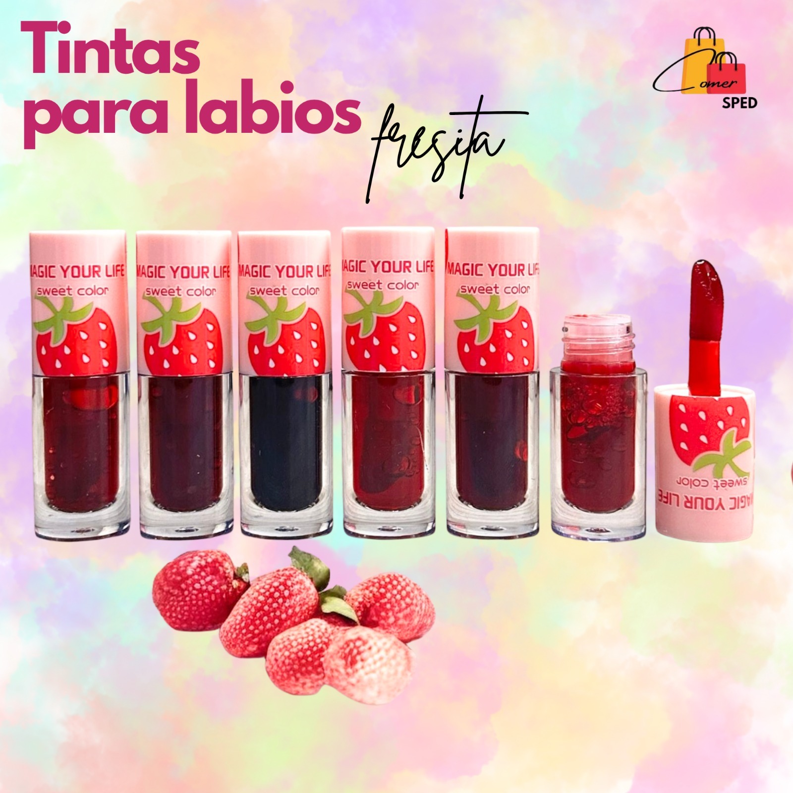 🛍Tonos rojitos y vinos, olor y sabor fresita.