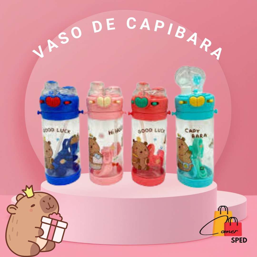 🌟Material: Plástico 🌟Abre facil, con popote 🌟Diseño de capibara